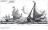 Te oordelen naar het met ronde luiken afgedekte ruim, dienden zo deze zeilende steigerschuiten tevens voor het vervoer van „koopmanschappen". Evenals de roei-steigerschuit links op de tekening. De zeilende steigerschuit heeft zelfs een uit hout gesneden mensenkop op het roer. Aan deze roerkop, vaak een „Mercurius"-kop ontleende de 18de eeuwse jachtboeier de benaming „kopjacht". Ook onder de op vele andere 17de eeuwse prenten afgebeelde smalschepen, damlopers en vooral beurtschepen en -scheepjes waren er verscheidene met de uiterlijke kenmerken van het binnenvaart boeiertype.