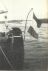 Het is nu volkomen windstil en bijna donker. In de nacht loopt er een hond over het dek, en de kapiteinse die het ge luid niet kan verklaren roept angstig om hulp. 's Morgens gaat Kor de Lemmer in om te fotograferen. Ik onderga in een scheerwinkel heel weelderig een verjongingskuur. En de kapiteinse bewandelt de wandelpier van de Lemmer. Als ze met een gezicht van het zal toch moeten", over de zee spiedt, komt een Lemmervisser haar bemoedigen met een verhaal over 4 studenten, die met een Staverse jol zijn vergaan. Hij wijst de plaats aan, waar de schipbreuk ongeveer heeft plaats gehad. Wanneer Kor en ik aan boord komen, merken wij al gauw dat er iets hapert en we moeten mee naar de visser, om uit diens mond het luguber gebeuren te vernemen. Een collega-visser beaamt knikkend de woorden van de zegsman er we moeten aannemen dat het waar is. Omdat ik in de scheerwinkel er niets over heb horen verluiden, vraag ik een beetje verslagen, wanneer het gebeurd is. De eerste visser, lang en een beetje krom, kijkt eerst over de zee, spuwt dan op de grond en zegt dat het bekant 40 jaar geleden moet zijn.
