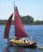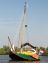 Een marlijn is een zwaardvis uitgedrukt in de roerkop want de Grundel is een spits schip van voren. De vis is de snelste zwemmer ter wereld, dan maar een snelle naam want dan hebben we als platbodem toch iets snels. - Kleurencombinatie: We wilden een kleur die uitspringt boven de plat- en rondbodem traditionele kleurgeving. Oranje op plaatsen die makkelijk beschadigen (berghout en boeiboorden ‘menie’). Geel als overgang van romp kleuren naar de bruine zeilen.