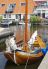 Prachtig schip. Lang 4,80M, breed 2,12M. Plusminus 90 jaar. Opgebouwd uit brede gangen. Niet gepiekt. In originele kleuren geschilderd. Zeer fraai snijwerk. Bedelbalk met vlammenspuwende draken.... Lag in reparatie bij Jonkman te Rijpwetering. Is in vaste stalling bij Jonkman te Sassenheim. De ouderdom werd mij opgegeven door de scheepmaker.